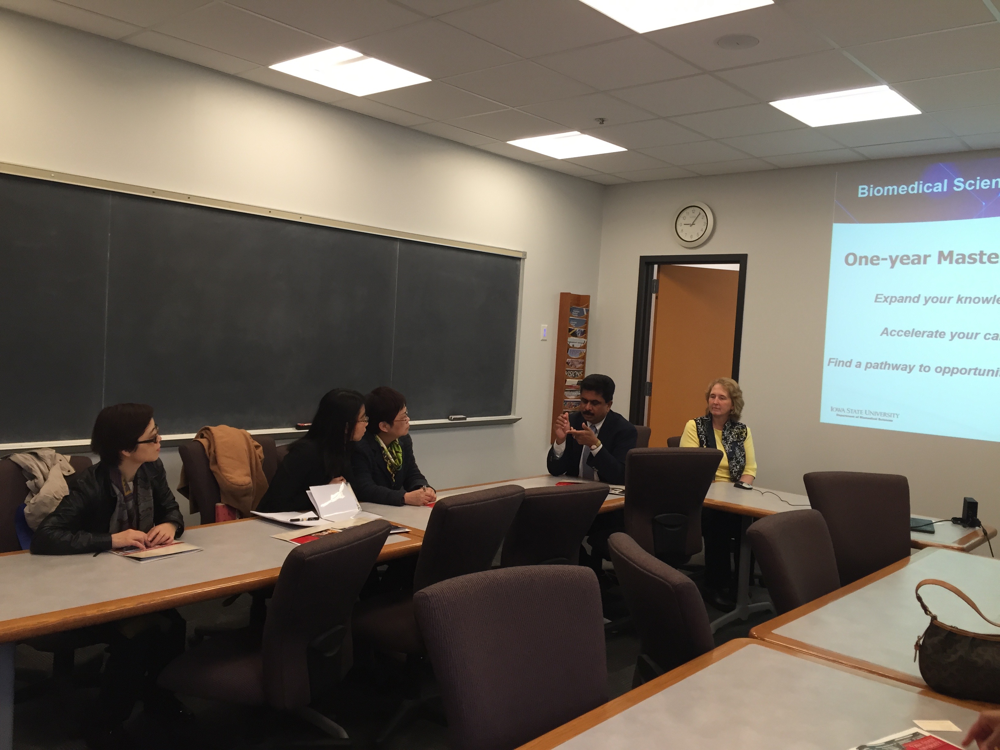 访问期间,与爱荷华州立大学主管国际项目的人文公司经理琳达?哈格多恩、生物医学系主任阿努门萨?坎特萨米教授、食品与营养系主任罗丝?麦克唐纳德教授和曼朱?雷迪教授会面,双方就营养学课程建设,教师、员工互访交流,共同申请相关课题以及一年制无论文硕士研究生项目等多项事务进行了深入的探讨,将协商签订合作意向书。