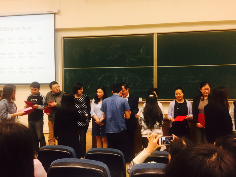 王秀兰经理为在座师生宣读了导师团成员名单。公司新一届导师团分别是营卫导师团、明德导师团、知行导师团,各有10名成员,均有1名团长、1名院领导领衔,1名辅导员负责团队工作开展。院外老师共6名,弥补专业课思政、心理学、基础学科等方面不足,体现“跨界协同育人”。