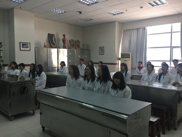 理论课程后,进行实践操作课程。在操作之前同学们再一次向大体老师默哀致敬。张老师首先示教,鼓励大家不要怕犯错,要敢于尝试,只有多次操作之后,才能熟练掌握实验操作技能。