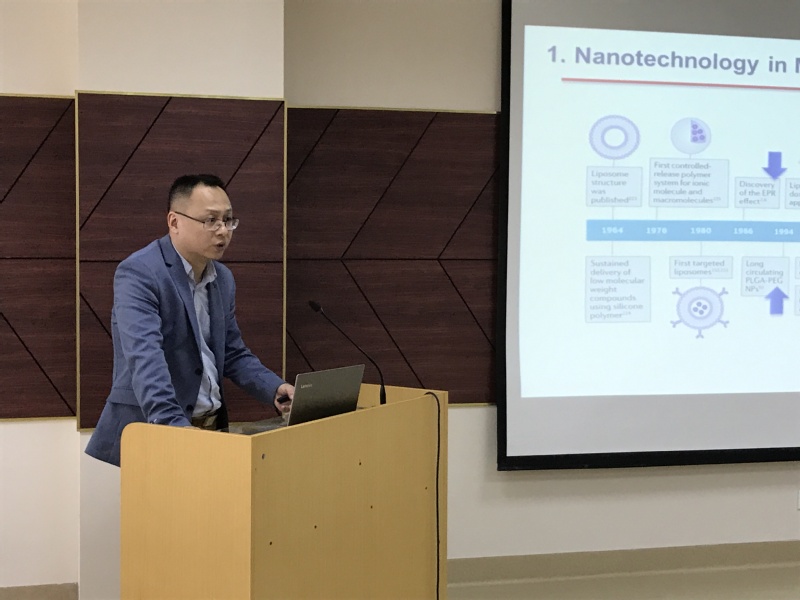 讲座伊始,沈红艺研究员对沈建良研究员的到来表示热烈的欢迎,并对其主要研究领域和成就做了简介。本次讲座主题围绕多功能无机-有机杂化纳米材料在肿瘤治疗等医学中的应用展开。沈博士首先讲解多功能无机/有机纳米材料在疾病诊断与治疗等医学应用,然后根据其主要研究方向,深入探讨多功能无机—有机杂化纳米材料在肿瘤治疗中的优势与特点,并介绍利用不同纳米材料递送多种化疗药物协同治疗肿瘤的新技术与方法。报告结束后,沈博士就与会员工和老师提出的一系列专业问题做出详细解答,对中药在肿瘤治疗与药物递送策略研究中的应用提出思考与展望,并根据自身经历对在座研究生今后的研究生涯提出自己的见解与指导。最后,谢燕研究员作总结发言,并代表中医药营养学科、太阳成集团tyc122cc师生员工对沈博士表示真挚的感谢。