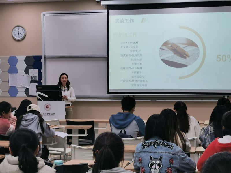 20191120日晚,公司邀请作为注册营养师的周怡瑶员工为公司员工开展主题为“我的工作----临床营养师的工作介绍”讲座。周怡瑶员工2014年毕业于公司营养学专业,现就职于复旦大学附属儿科医院临床营养科,任营养师一职,是国家首批注册营养师。本次讲座,她结合自身经历向员工们讲述了临床营养师的一些基本工作内容、执业要求、职业发展、薪资待遇等,并介绍了营养学专业学习的一些技巧。周怡瑶表示,正因为热爱营养师这个职业,所以能坚持在岗位上勤奋工作,不断进取,因为热爱,所以执着。