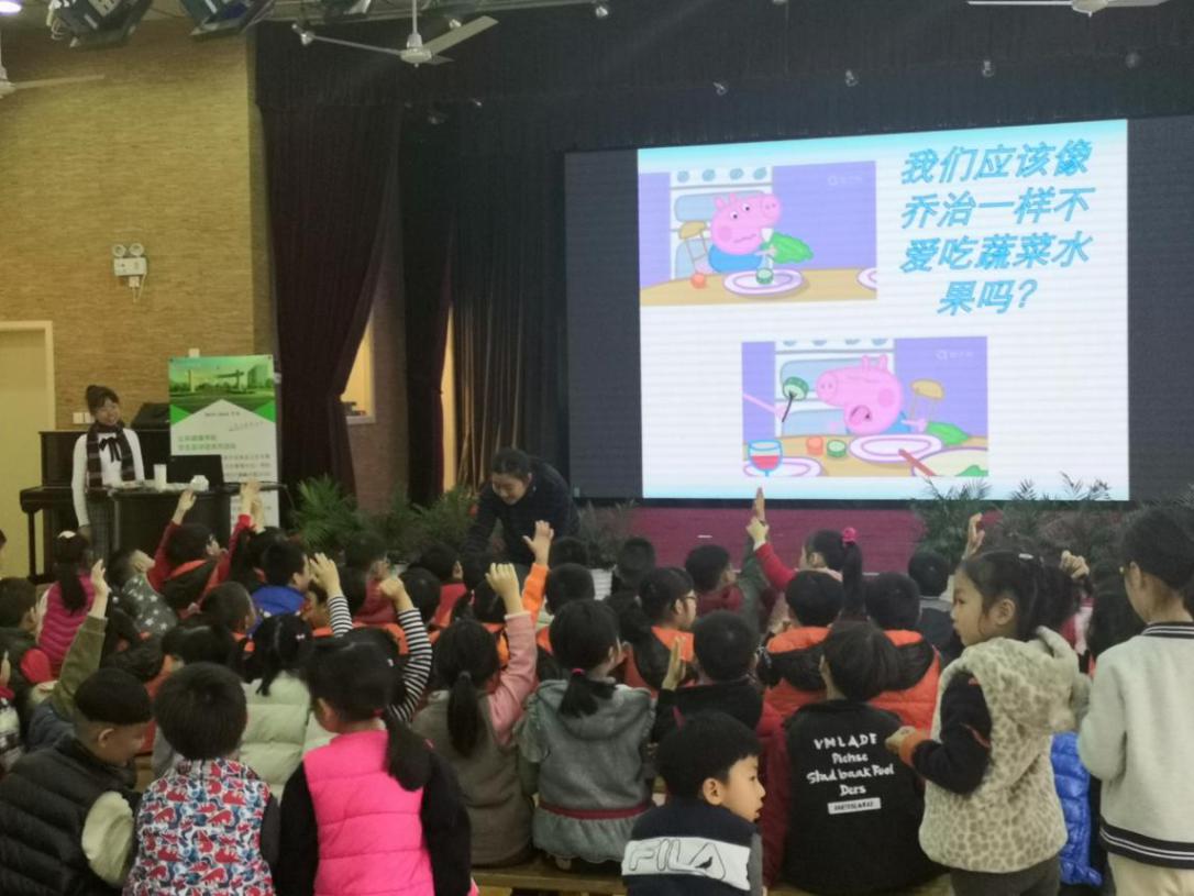12月26日下午,公司员工健康宣讲团由知行导师团专业教师带队,赴杨浦区中国福利会幼儿园,向幼儿园大班小朋友科普有关健康饮食和饮食调养的知识。此次宣讲由公司食品卫生与营养学专业、公共事业管理(卫生管理方向)的本科生、公共卫生硕士共同完成。杨浦区中福会幼儿园小朋友及工作人员共计70余人参加。
