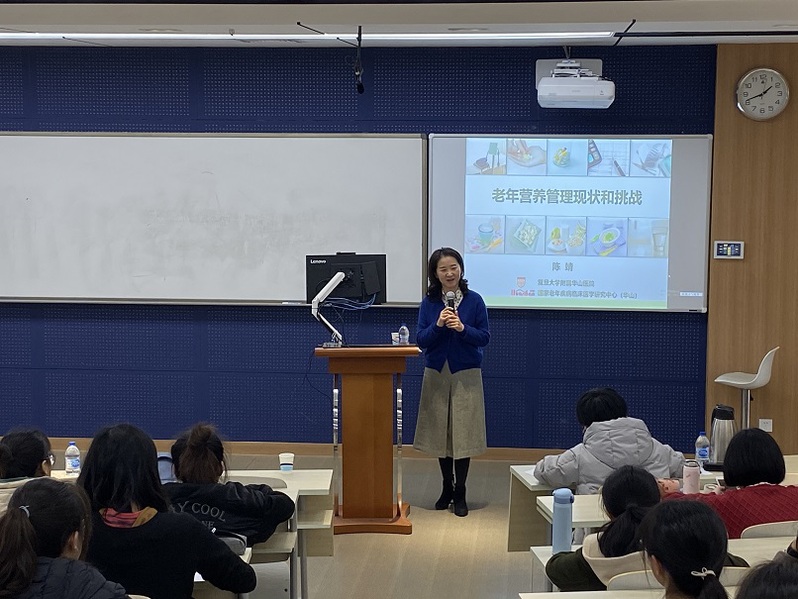12月25日(周三)下午,公司邀请公司客座教授、复旦大学附属华山医院科研处处长,肾脏病科副主任,血液净化中心负责人,国家老年疾病临床医学研究中心副主任陈靖教授来公司开展学术讲座“老年营养管理现状和挑战”。讲座由公司党总支书记段艳霞主持,公司师生120余人参加了本次讲座。