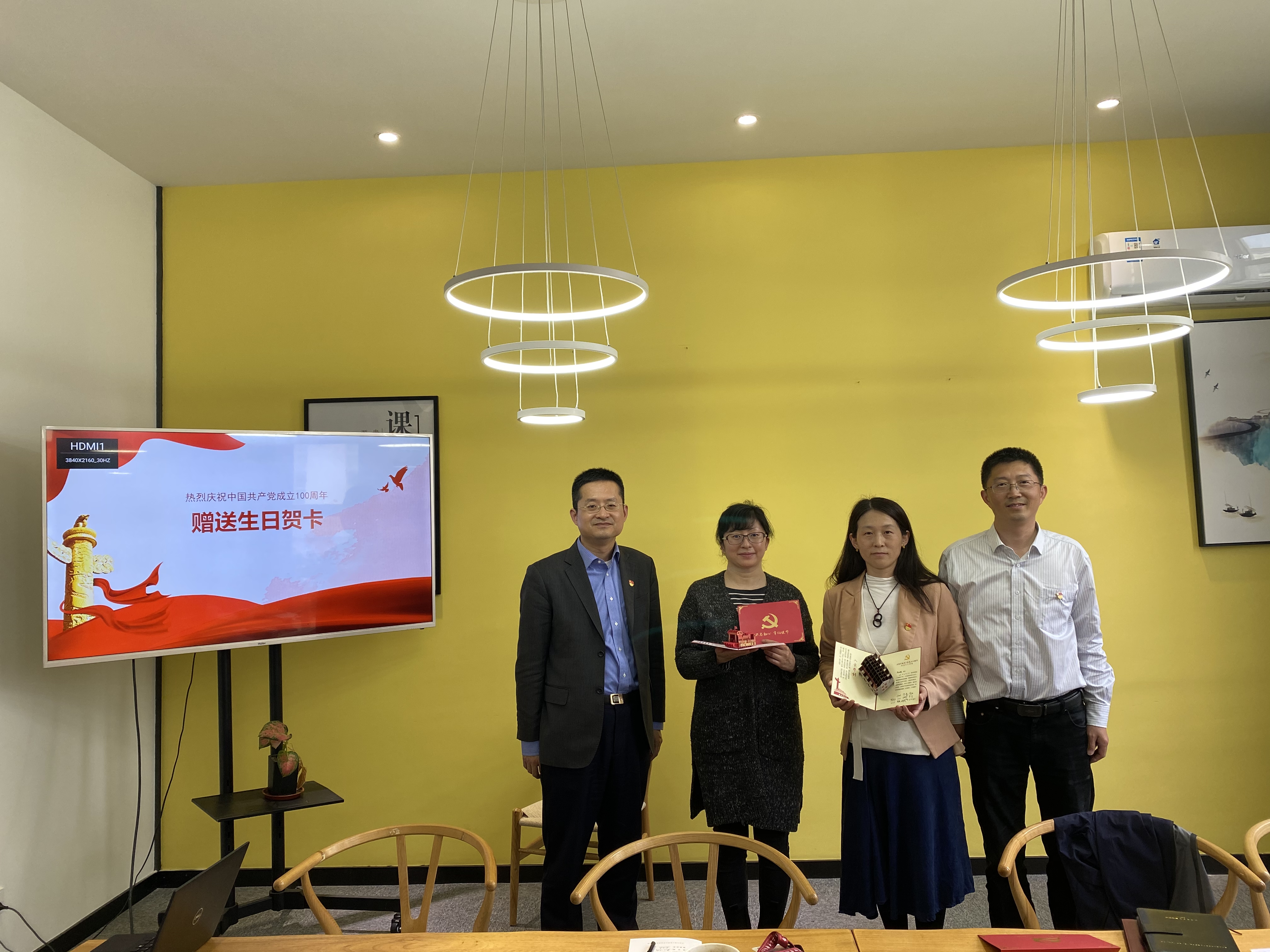 此次政治生日会开始,教工第一党支部书记张安介绍了两位党员的政治生日,并带领两位寿星公和所有其他党员重温了入党誓词,在庄严的宣誓后,党支部书记和赵海磊经理为两位过生日的党员送上了支部全体成员签字的贺卡作为生日礼物。