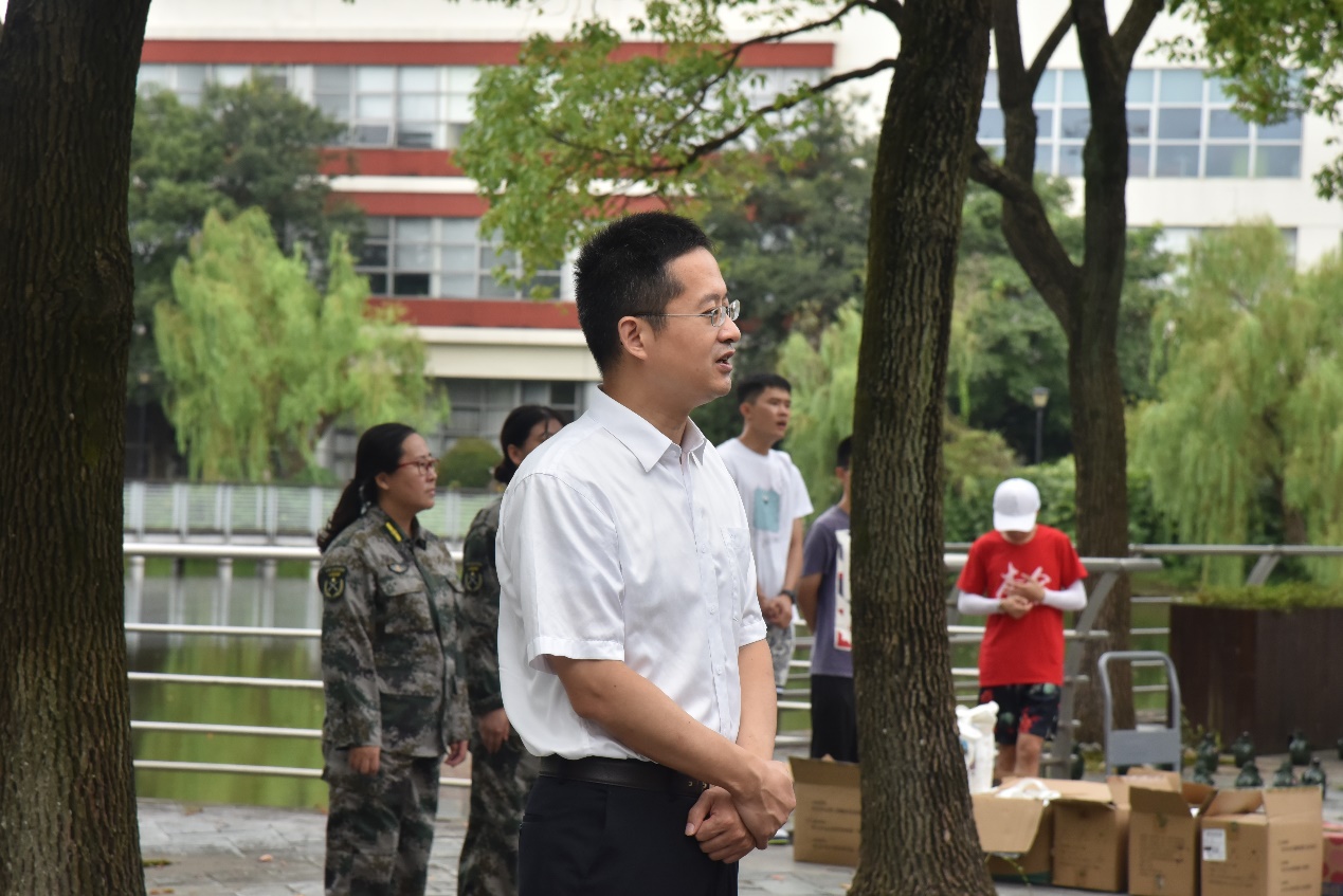 赵海磊经理表达了对全体员工的关心与祝福,赞扬了同学们在军训中表现出的坚持不懈的优良品质,同时对同学们提出更高要求,希望大家能够坚持到底、再接再厉,在最后的会操中向全校展现自己最好的精神风貌。