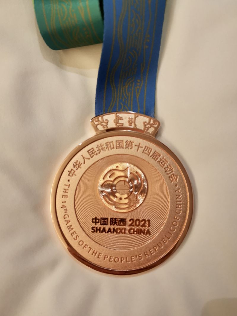 9月22日,在第十四届全运会群众赛事活动乒乓球比赛项目中,公司谢国群副经理作为上海代表队的一员,奋力拼搏,发挥出色,夺得40-49岁组男子单打比赛铜牌。上海市体育局赵光圣巡视员观摩了比赛,对谢国群副经理的获奖表示祝贺。