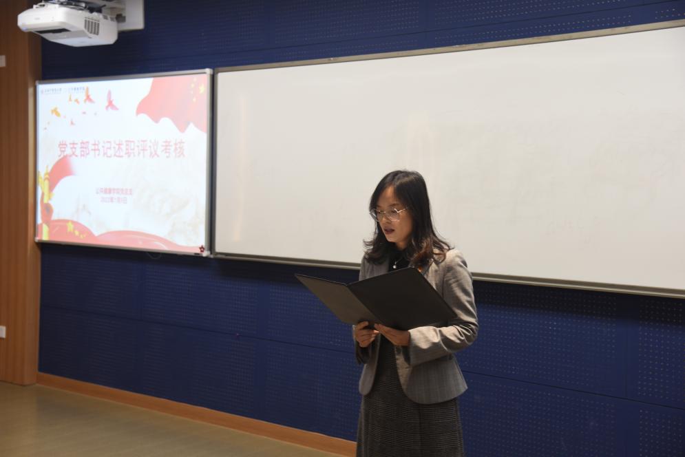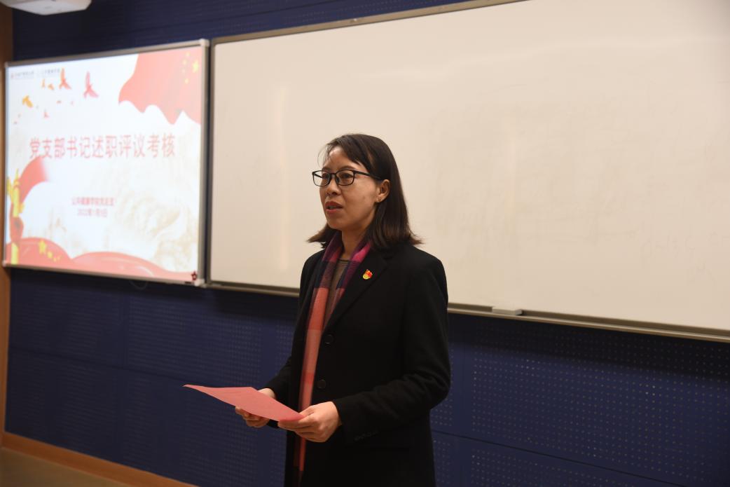 教工第一党支部书记张安、教工第二党支部书记谢燕、员工党支部书记冉秋分别作述职汇报。干旦峰对教工第一党支部及支部书记工作点评,在政治站位、理论水平、组织生活规范性和工作成效四方面给予肯定,同时提出进一步总结经验,用于剖析不足根源,仔细做好查改。党建督导张海凤对教工第二党支部及支部书记工作点评,认为支部在学习理论较全面、党建导师助力员工党员发展和结合党史学习教育办实事等方面有一定成绩,希望支部进一步凝练特色,尤其在理论学习指导课程教学方面多下功夫。组织员江慧芬围绕“三会一课”制度实施、党史学习教育开展和党员发展工作三方面对员工党支部及支部书记工作进行点评,肯定支部工作的同时,建议进一步梳理总结、凸显特色。
