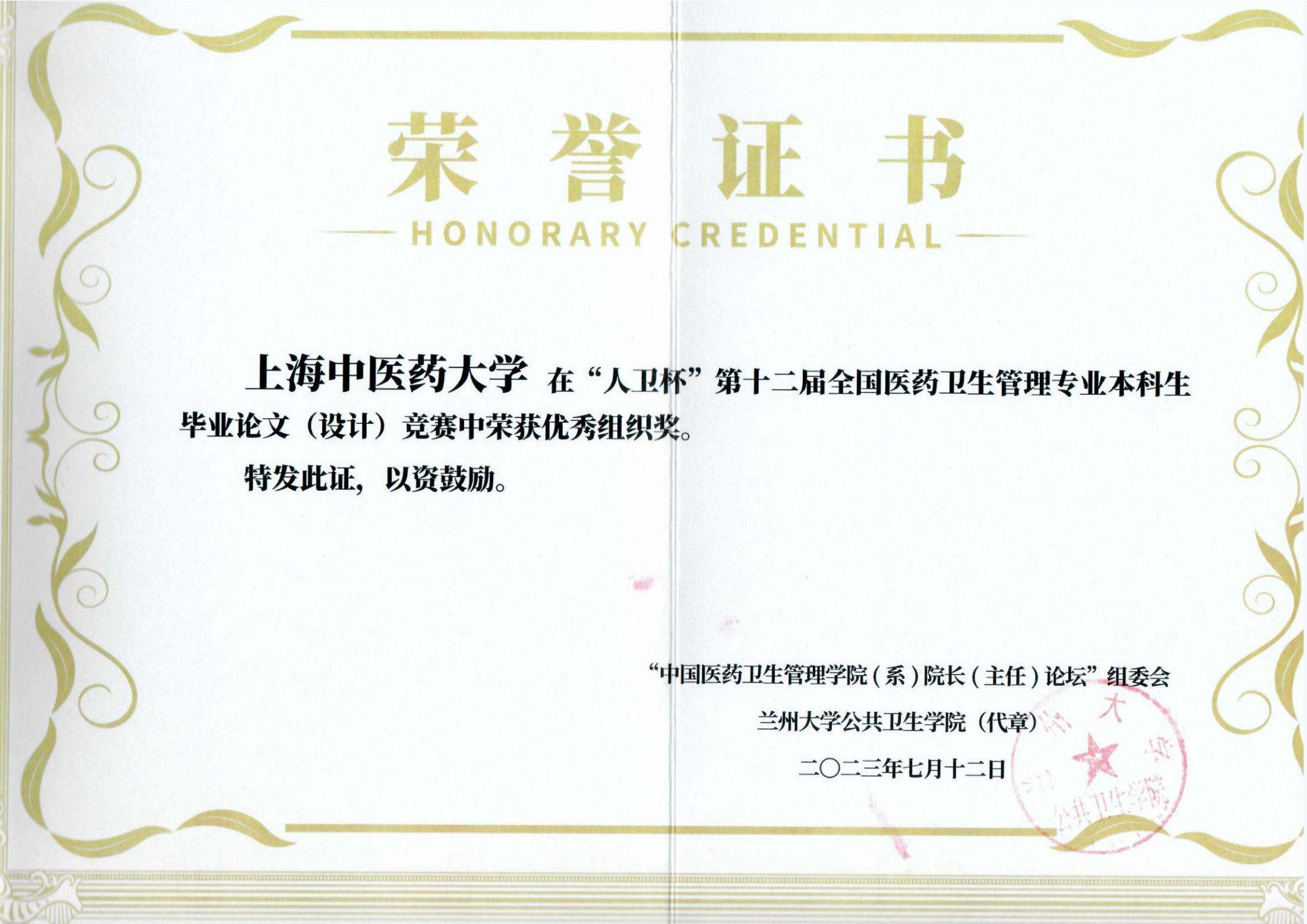 7月11日—13日,第19届中国医药卫生管理公司(系)经理(主任)论坛暨“人卫杯”第十二届全国医药卫生管理专业本科生毕业论文(设计)竞赛在兰州举行。太阳成集团tyc122cc组织参赛的3篇本科生毕业论文分别获一等奖(2项)、三等奖(1项),公司同时获得赛事优秀组织奖。
