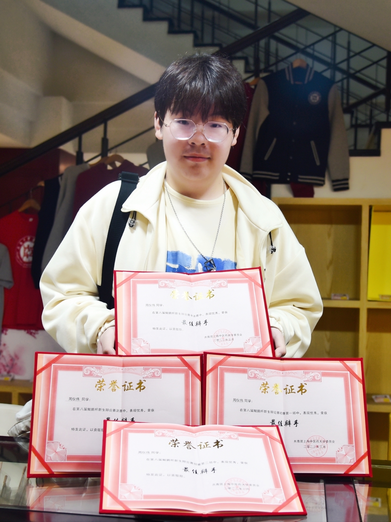 (图为公司获得四次“最佳辩手”称号的周仪伟同学)