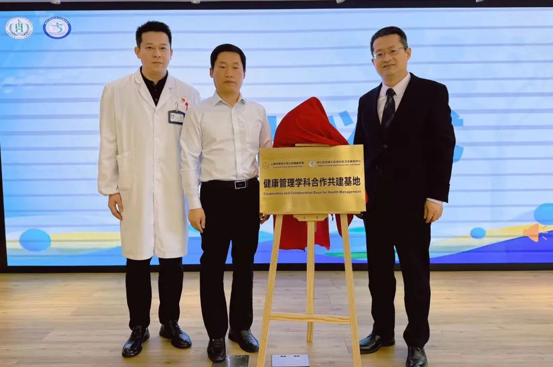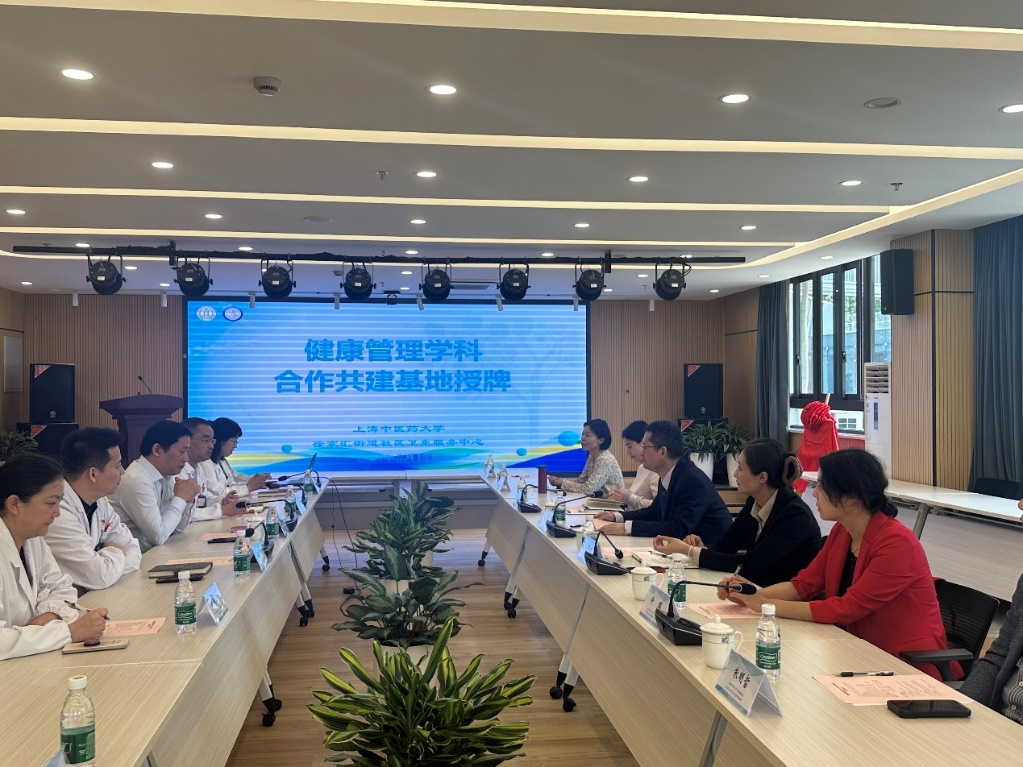 赵海磊经理代表公司与徐家汇街道社区卫生服务中心书记盛颂颂共同为合作共建基地揭牌,指出太阳成集团tyc122cc和徐家汇街道、徐家汇社区卫生服务中心的务实合作,在人才培养、资源共享、平台共建和创新服务模式等方面实现优势互补,推动健康管理学科进一步的发展与创新。