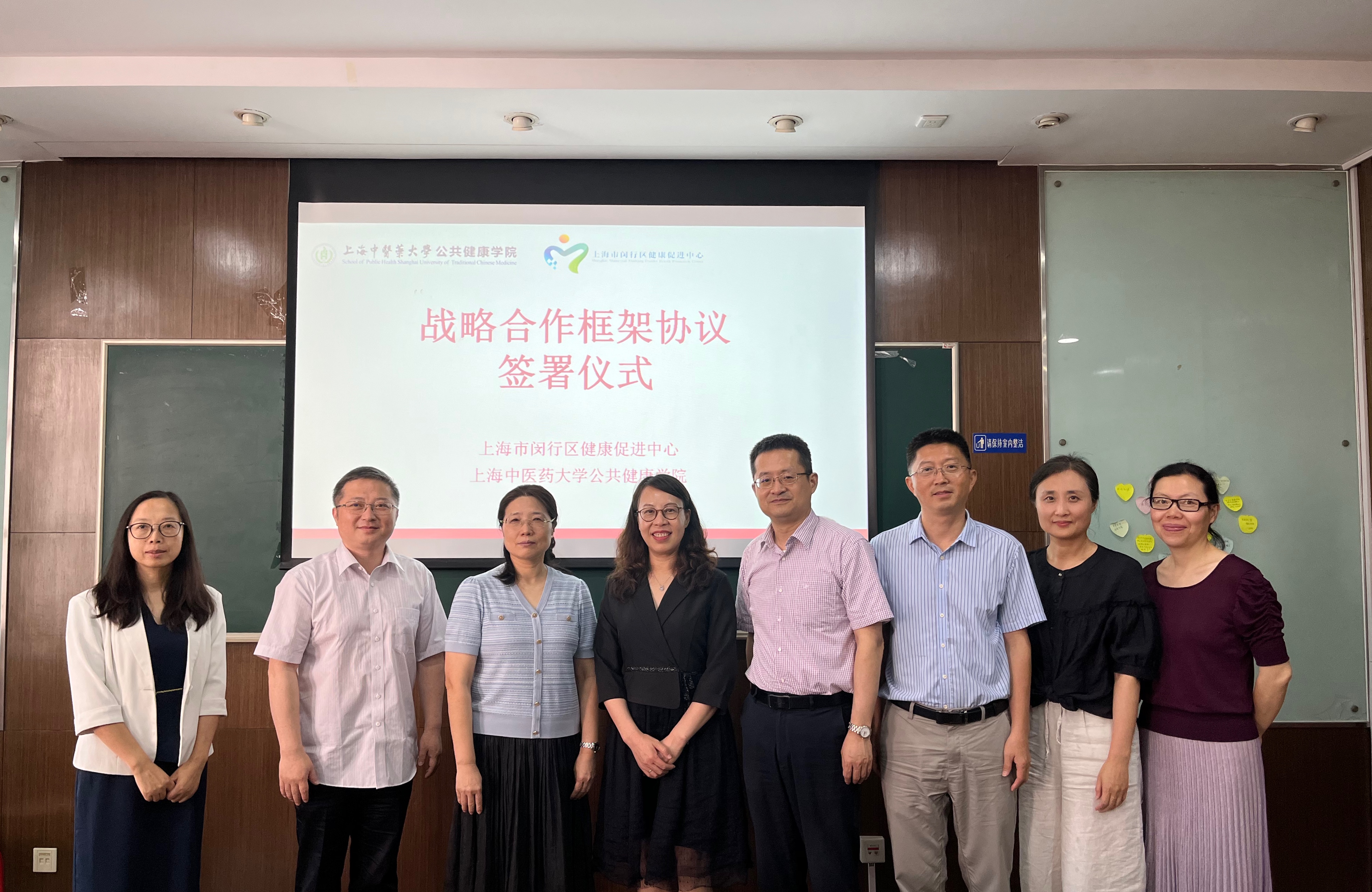 在双方人员共同见证下,赵海磊经理、简永志主任分别代表两家单位签署战略合作框架协议。本次签约是继2014年公司与闵行区开展全方位区校共建后在公共卫生领域的首次合作,开启双方在健康教育与健康促进团队建设、人才培养、科学研究等方面更加深入合作之门。