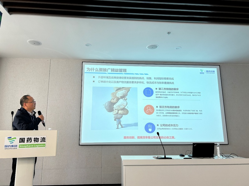 在交流环节,国药集团的物流专家为公司师生重点介绍了国润医疗IVD-SPD(检验科试剂耗材供应链)智慧服务,展示了其在医药供应链领域的创新成果:包括精益管理整体流程,显著提升运营效率并降低成本;SPD平台信息闭环管理,实现从需求预测到终端配送的全链路信息化管理,确保数据实时共享与动态监控,形成高效的信息闭环;数字化看板,实时监控库存与周转情况,助力决策优化,以及市内AI签单,应用人工智能技术,实现配送签收自动化,缩短交付时间,提升客户满意度。