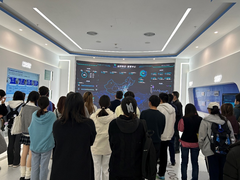 师生们参观了国药物流企业文化展厅,深入了解企业发展历程、核心价值及社会责任。在国药物流智慧中心,通过大数据屏幕直观感受智能调度、仓储管理和运输监控的科技赋能。在物流仓库操作区,师生们近距离观摩现代化仓储作业流程,包括自动化分拣、冷链存储及智能配送等环节,切身感受科技如何提升供应链效率与安全性。