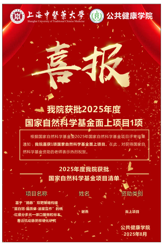 8月27日,国家自然科学基金委员会正式公布了2025年度国家自然科学基金集中受理阶段评审结果,公司健康营养研究室谢燕研究员获资助面上项目1项。
