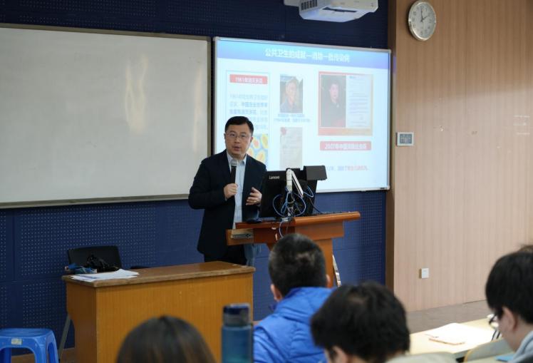 吴寰宇老师就“公共卫生的成就和疾控人的使命担当”为主题,回顾公共卫生事业发展历程,展示公共卫生事业在保障人民健康、应对重大疫情方面取得的显著成效。同时,深入探讨新时代疾控工作者所肩负的预防为主、科学防控、服务社会社会的职责使命。强调了疾控人“特别能吃苦,特别能战斗,特别能奉献”的疾控精神与“生命至上,举国同心,舍生忘死,尊重科学,命运与共”的伟大抗疫精神。强化师生对公共卫生体系重要性的认识,凝聚专业认同,以期激发更多人才投身到疾病预防控制事业,为推进中国健康中国建设,筑牢公共卫生安全屏障贡献智慧与力量。